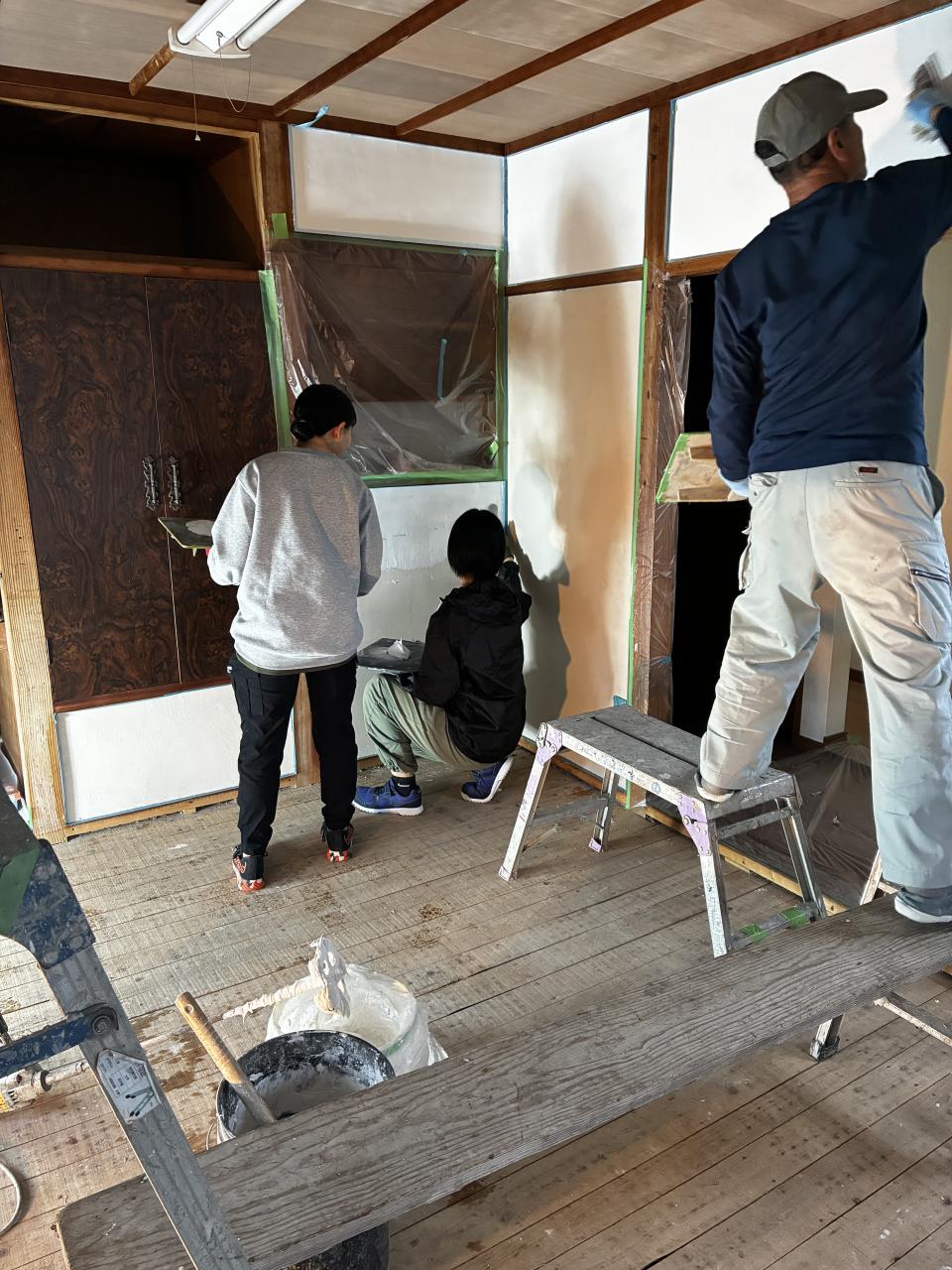 初日から漆喰塗り